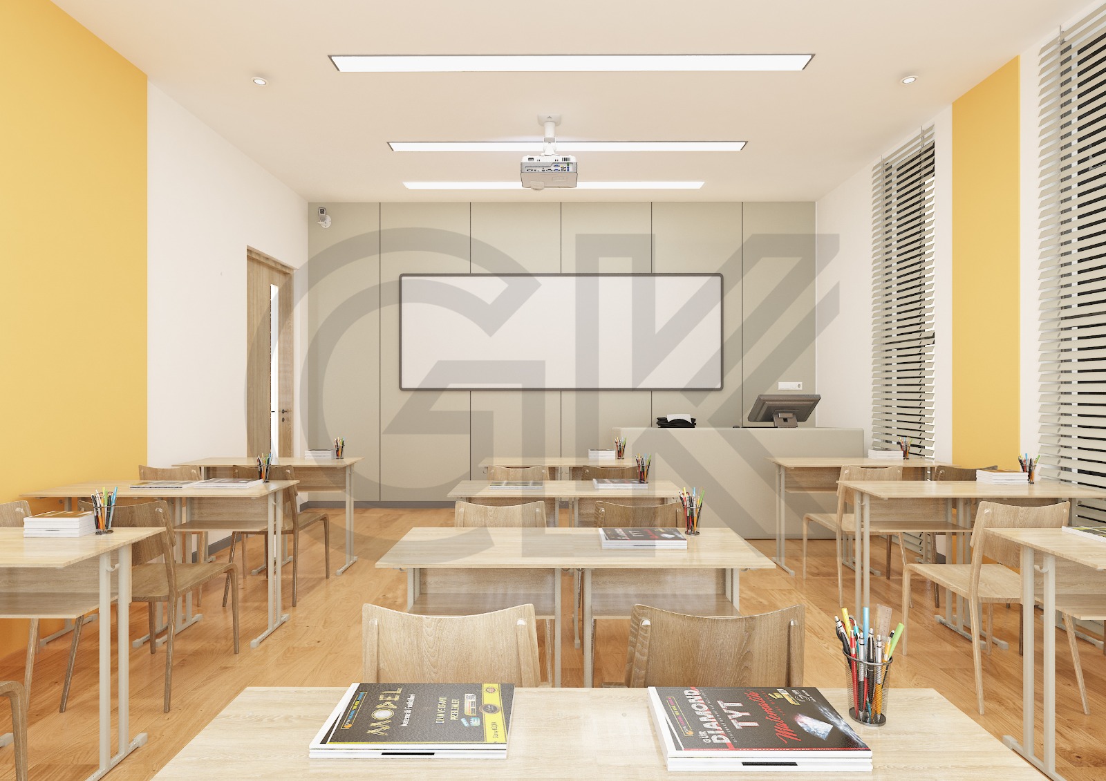 Proje İçeriği: Güray Küçük Akademi'ye ait eğitim merkezleri için bir fikir projesi olarak ortaya çıkan çalışma kapsamında mevcut yönetmelikler doğrultusunda eğitim kurumlarında yer alması gereken mekanlar modern bir anlayışla yeniden yorumlanmıştır. Bu kapsamda farklı noktalarda uygulanabilecek eğitim merkezleri için özellikle iç mekan tasarımları ve malzemelere odaklanan tip bir proje hazırlanarak uygulama detayları ile birlikte katalog haline getirilip sunulmuştur. Müşterinin yayın hakları gereği projeye ait görseller logo ile birlikte kullanılmıştır.